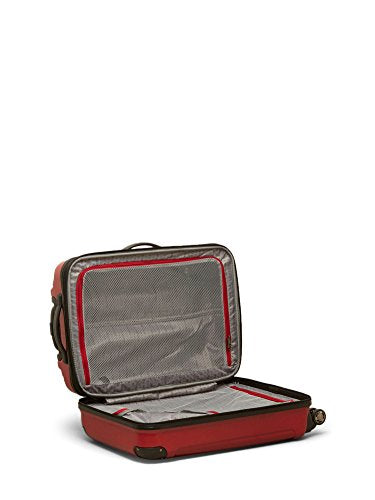 Details: Expandable 4-wheel carry-on suitcase Durable ABS with PC blend with unique sand blasted texture Features two sided packing Main compartment includes large U-shaped mesh pocket Convenient top and side flexible handle and molded grab handle at bottom of bag Locking retractable handle system Overall dimensions: 26.5" H x 18.5" W x 11 - 12.5" D Packing dimensions: 23.5" H x 16.75" W x 10.5-12" D Weight = 9.85 lbs Imported