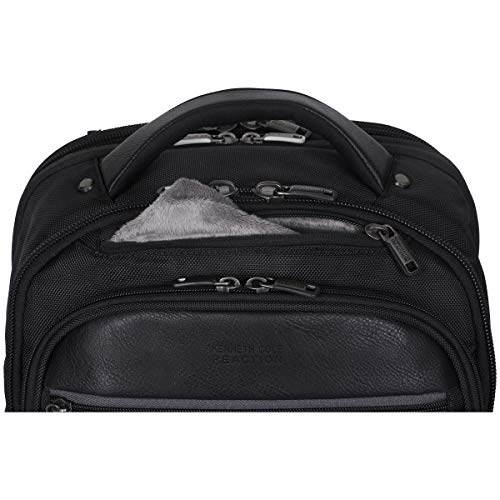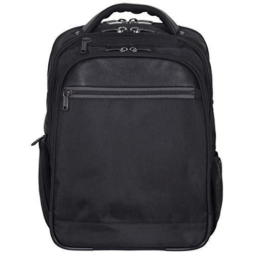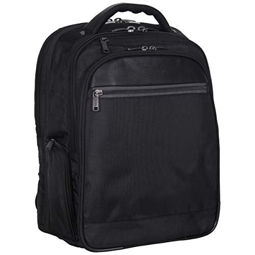 Details: 1680d polyester double gusset top zip ez scan computer backpack. 1680d polyester exterior with leather-like pu trim and fully lined interior. Double gusset, expandable top zip construction with ez-scan feature. Expansion feature for added carrying capacity. Size: 17.0 inch h x 13.0 inch w x 8.25 - 9.5 inch d. Easy access zipper pocket and soft lined zipper pocket to hold digital media or other valuables. Front zip down pocket includes an extensive organizer that will hold a variety of business essentials and includes a removable zippered accessory pouch. Designed with checkpoint friendly/ez-scan feature which complies with tsa guidelines so your laptop does not need to be removed when passing through airport security checkpoints, allowing you to get on your way faster. Front compartment contains a padded iPad/tablet pocket, a full length open top pocket, and a zippered mesh pocket. Ez-scan section includes three zippered organizer pockets. Rear compartment is padded to hold most laptops with up to a 15.6 inch screen. High tech double density foam padding for extra laptop protection. Side exterior features a zipper pocket and a mesh open top beverage holster. Padded top handle and air mesh back panel that will attach to most luggage upright handles for hands free carrying. Ergonomic adjustable backpack straps with sternum strap.