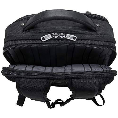 • EZ-Scan Section Includes Three Zippered Organizer Pockets. Rear Compartment Is Padded To Hold Most Laptops With Up To A 15.6 inch Screen . High Tech Double Density Foam Padding For Extra Laptop Protection.