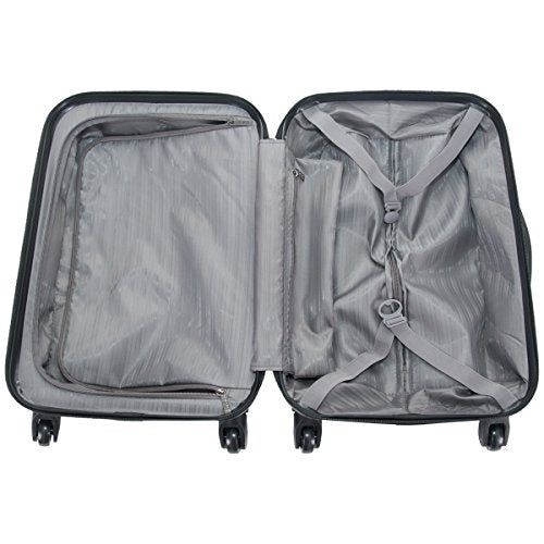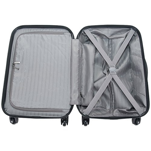 Details: 20” Molded ABS 4-Wheel Upright Carry-On Luggage With Corner Guards. Durable ABS Hard-Shell Exterior With Fully Lined Interior. Lightweight Construction Helps You Adhere To Airline Weight Restrictions to Avoid Unneeded Airport Fees. Multi-Directional 4-Wheel Spinners Allow Smooth, 360° Degree Movement Over Any Rough Surface For Complete Mobility Free-Weight Rolling, Relieving Any Pressure From Your Arms While On The Move. Molded Corner Guard Reinforcements For Absorbing And Deflecting Shock For Maximum Impact Resistance. Features Self-Repairing Coil Zippers For Long-Lasting Use. Fully Lined Interior Main Compartment Features Garment Restraint Straps To Hold Your Clothes and Contents In Place And A Large Zipper Accessory Pocket. Front Lid Features A Large U-Shaped Zipper Pocket Allowing For Double Sided Packing. Convenient And Flexible Top And Side Handles Allows For Easy Lifting And Maneuvering. Molded Side Feet Allow Luggage To Stand Upright On Its Side. Sturdy Locking Retractable Push-Button Telescopic Trolley Handle Conductive For Simple, One-Handed Use. Meets Most U.S. Based Airline Carry-On Size Requirements And Fits Into Most Airline Overhead Bin Compartments. Overall Size: 21.75” H x 14.5” W x 8.5” D. Packing Dimension’s: 19.0” H x 13.25” W x 7.5” D. Item Weight: 6.25 lbs.