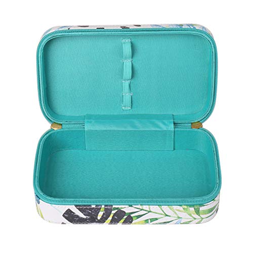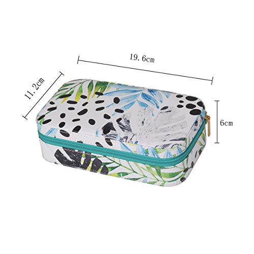 Details: This on-trend, hard-sided travel makeup case is the perfect size to bring on long trips or simply to put in your handbag or gym bag for everyday use. CRUSHPROOF--The hard-sided case ensures that your valuable cosmetics are protected from the damaging effects of other heavy items. SPILLPROOF--The case is covered in a chic, printed vinyl pattern that can easily wipe clean. ORGANIZES--The inside cover has four elastic loops thoughtfully placed to hold brushes, lipstick tubes, pencils and more. STURDY & FUNCTIONAL--The gold zipper adds functionality with two sturdy zipper fobs. SIZED JUST RIGHT--The dimensions of the case are 19.5 cm long, 11 cm wide and 6 cm tall. The inside compartment is approximately 3.5 cm tall. The perfect size to carry with you every day and it fits just the right amount of items.