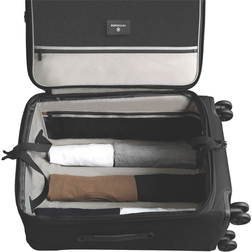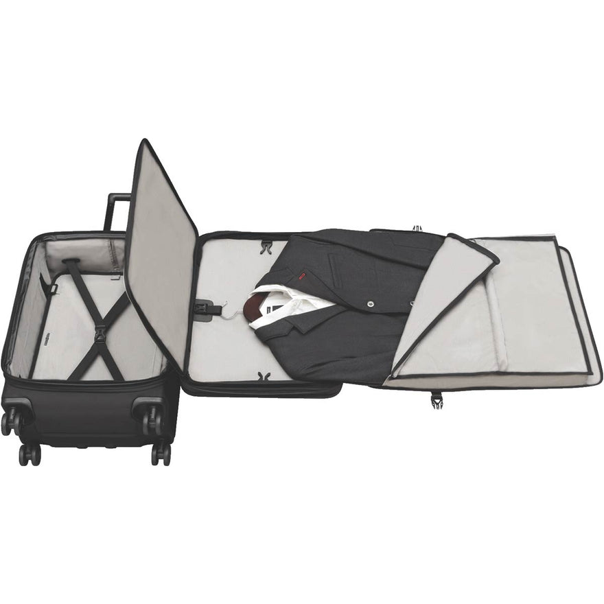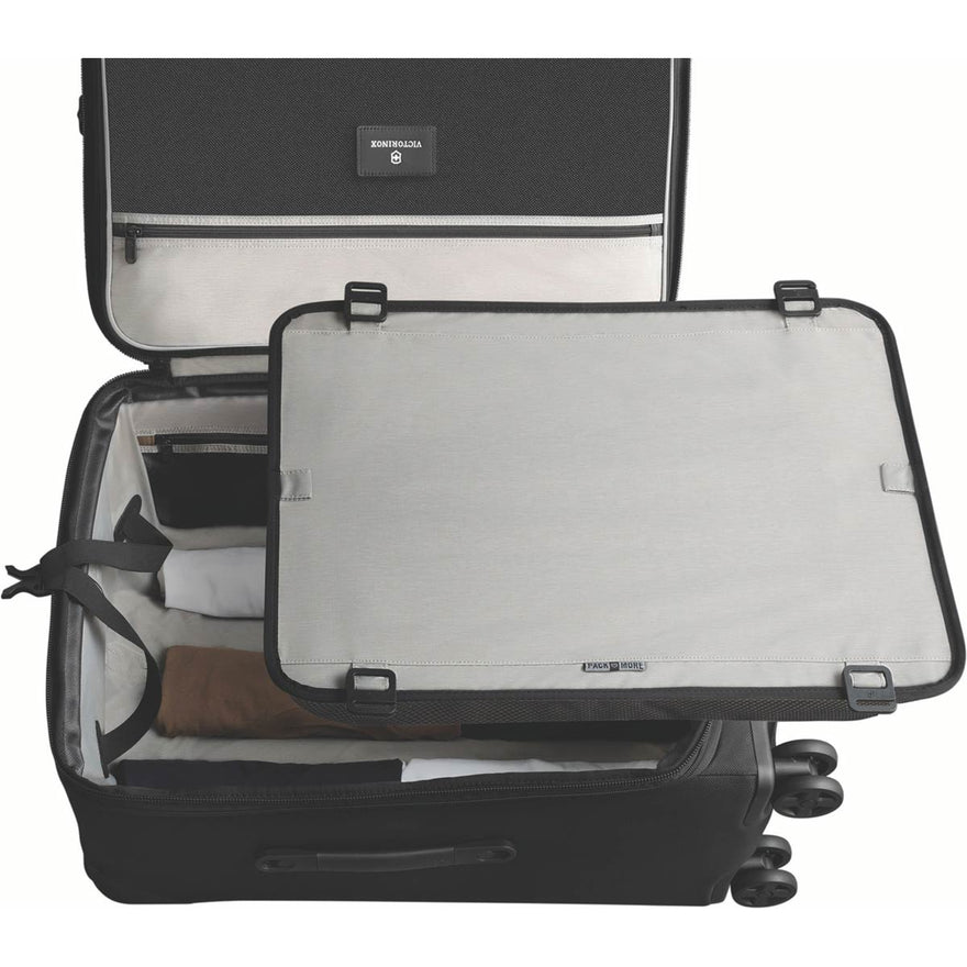 - Pack More System includes a deluxe Pack More divider, vertical X-shaped compression straps, a removable suiter and a 5 cm (2rdquo;) zippered expansion