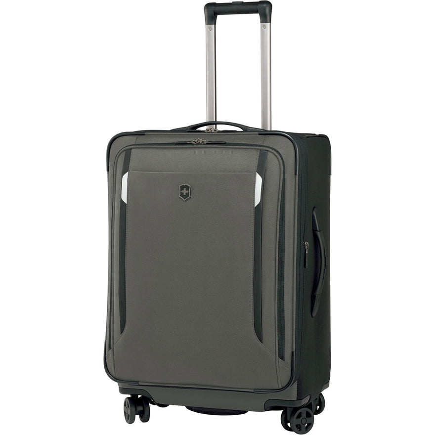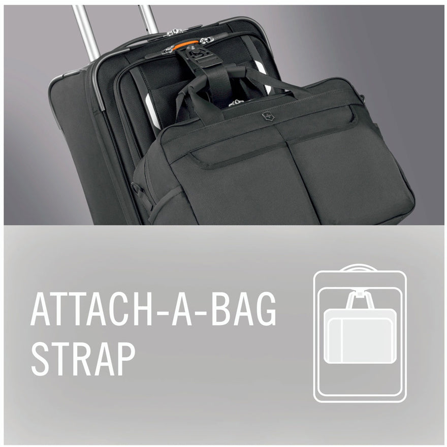 - Dual-trolley handle system allows for superior control and maneuverability through tight spaces and allows you to rest another bag on top of the upright for consolidated travel