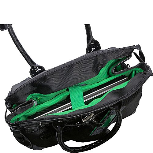 Details: Take your mobile office or light travel essentials with you comfortably and stylishly in the AmeriLeather Deluxe Skylar Women's Rolling Laptop Tote. This lightweight yet durable EVA foam-padded polyester bag features embossed faux leather detail and shiny, silver-toned hardware; and it makes an ideal carry-on case or commuter's companion. It boasts a spacious, brightly-lined interior with a wide-mouthed, zippered closure; a padded laptop computer compartment; a zippered pocket; and plenty of room for your files, and its stretchy, open side pockets offer quick access to your water bottle and cell phone. Its sturdy, rolled double handles provide carrying comfort, and it comes with in-line skate wheels and a hideaway, push-button, locking and retractable handle system.