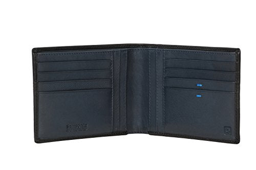- Gunmetal logo plate with light blue Samsonite wording.