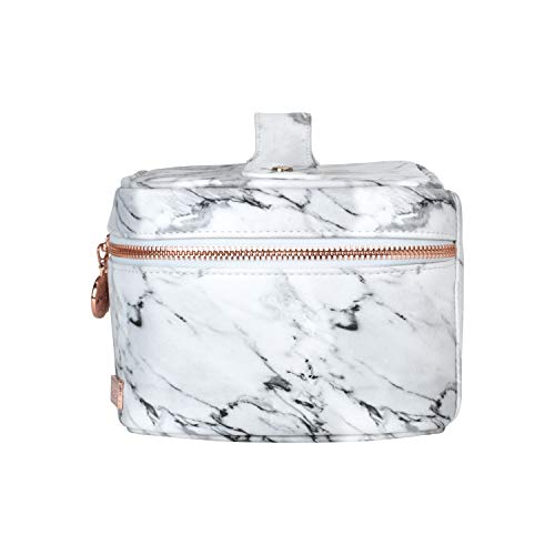 Details: A luxurious home for your beauty must-haves, this sumptuous travel case securely straps product in to prevent spills while providing effortless utility. A zippered lid pocket and elasticized brush holders further organize essentials for easy access.