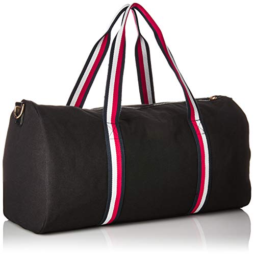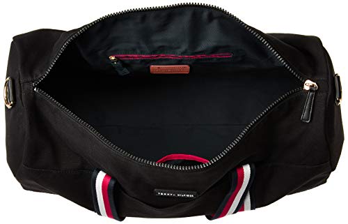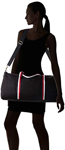 Details: Duffle bag for women featuring our classic tommy signature stripe and top zip closure. Lined nylon interior and gold tone hardware. 2 interior pockets and 1 slip pocket. This Tommy Hilfiger canvas duffle is a versatile essential, the perfect durable bag. Our classic duffle for women is your go-to bag for a weekend getaway.