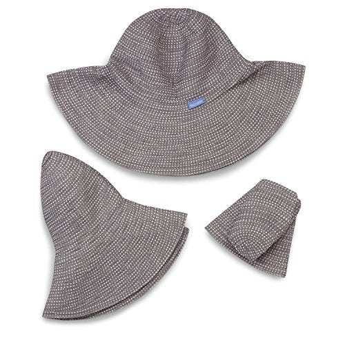 Wallaroo Hat Company Women’s Petite Scrunchie Sun Hat – Grey/White Dots – UPF 50+