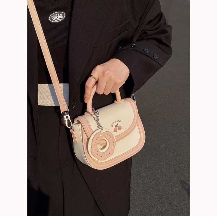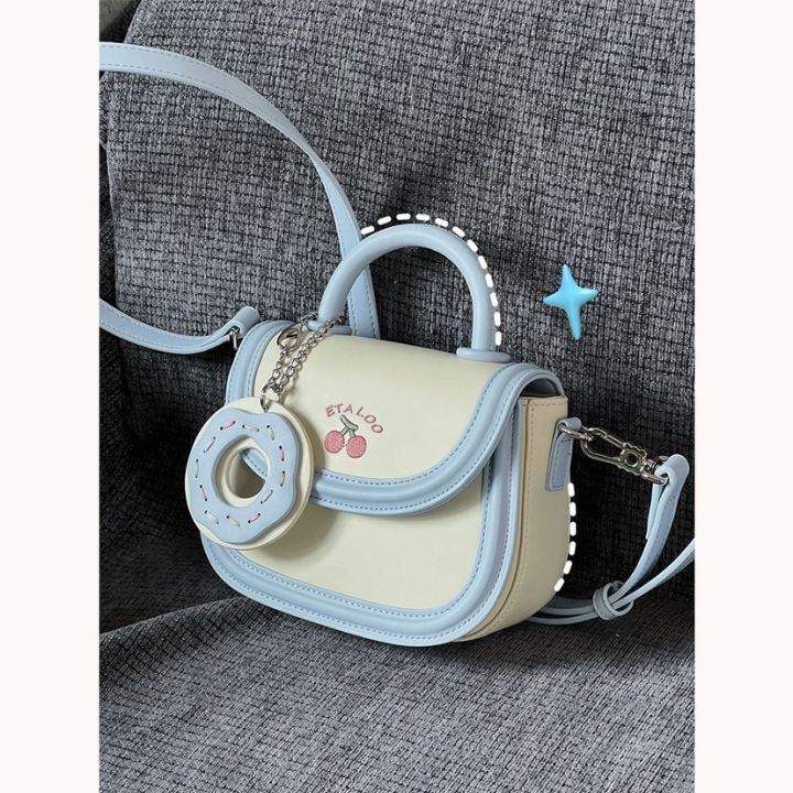 2023 new bag cute junior high school student saddle bag Japanese biscuit off-white hand-held single shoulder Messenger bag female spring