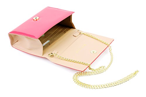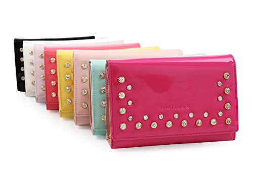 Details: This adorable messenger bag is made of polished patent leather with lots of sparkling rhinestones on the front. It has a magnetic snap closure and a removable golden chain strap (drop21 inch).It features only 1 large room for your daily items such as keys, cash, change, coins ,lipstick, mirror and mobilephone.Interiror also 6 card slots and a slit interlayer for your most important papers. So pretty and trendy is it that it will be girls' best gift.