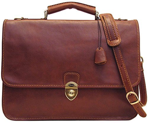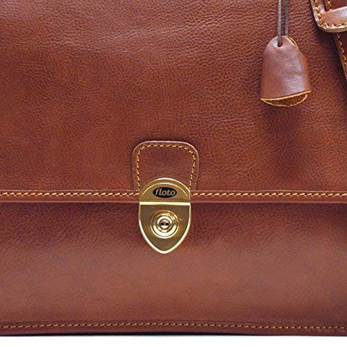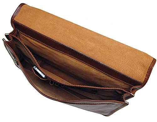 Details: Floto Messenger Brief Leather Bag comes in Saddle Brown Italian "oil" Calfskin - which will become softer in time and break in similar to a bomber jacket. The interior is big enough to hold a laptop and files. It has two separate internal compartments, a pen and smart phone holder, a large outside zip pocket, and detachable shoulder strap.