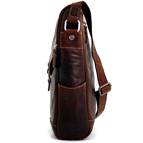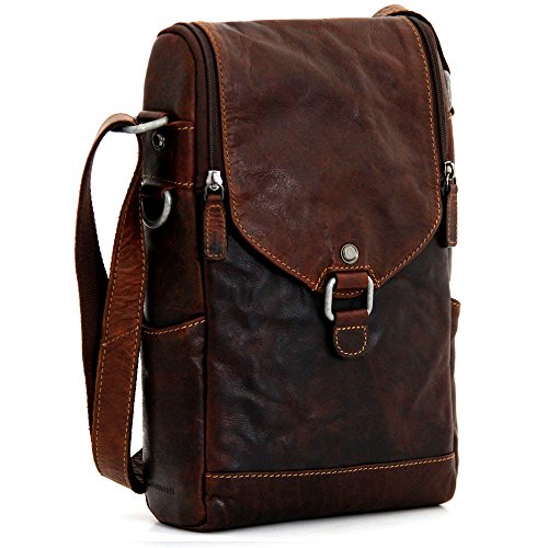 Details: This bag is a cross body messenger and a wine carrier in one. As a wine bag, it offers a sophisticated way of transporting your favorite wines for a dinner engagement or special event. It has space for two bottles, keeping them safe and secure inside. Or you can choose to carry a single bottle of wine and two glasses. Open pockets on the gussets are the perfect place to put a corkscrew, drip ring, or bottle stopper. The inside of the bag has a padded divider to keep the bottles separated but conveniently folds away so that the bag can be used as a fully functional cross body messenger. The padded interior will hold your tablet, notepad, and accessories. Flap closure with zip down sides make it easy to open and close. Whether you use the bag to carry wine or as a cross body, you will enjoy the added flexibility that it offers. This hand made leather bag features: Soft constructionSide zip flap closureOpen gusset pockets (great place to carry your corkscrew, drip ring, or stoppers)Zippered outside back pocketPadded all around to protect wine bottles or your iPad, tablet, and other accessoriesA padded divider will keep bottles from clanging and is easily folded back when you're not carrying wineAdjustable shoulder strapD-ring on side gusset to clip on anything else you need to carryHandmade constructionAvailable in Black or BrownDimensions: 8" x 13" x 3 3/4"Metric: 20.3 x 33.0 x 9.5 cm