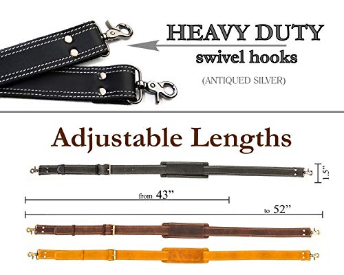 - STYLISH YET COMFORTABLE - No need to sacrifice style for comfort! Our black leather straps have an adjustable shoulder pad which helps distribute the weight of your satchel.