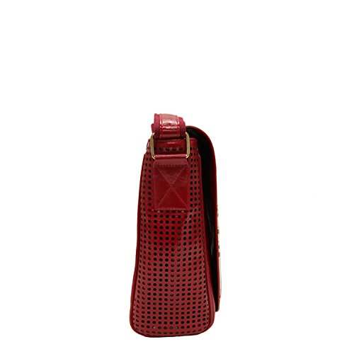 Details: Carry this season's must have the Nicole lee shopping girl print messenger bag. Exterior features: made of faux leather, Nicole lee's shopping girl print all around, studs embellishments, front flap closure, zip closure, back zipper pocket, gold-tone hardware, adjustable shoulder strap and Nicole lee nameplate in front. Interior features: zip wall pocket with no nameplate and double open wall pockets at interior back, laptop compartment with Velcro-strap and 7 open wall pockets at interior front, and polka dots print with no logo satin lining. Includes adjustable and detachable 30-55 inch inch belt shoulder strap. Color available is shopping girl. For cleaning, wipe with damp cloth.