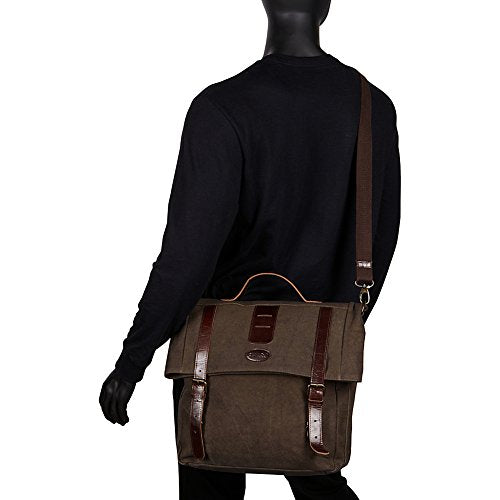 - Stylish, dark two tone canvas and leather messenger and carry bag