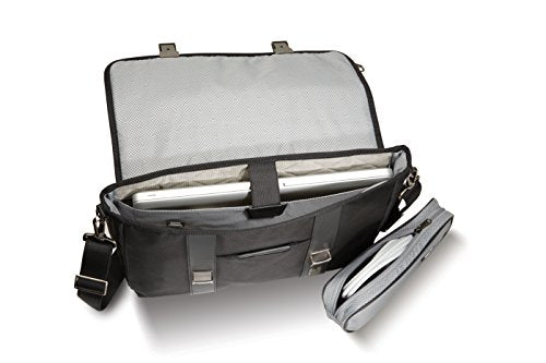 - Built-in business organizer and removable cord pouch provide efficient storage for business essentials and power cables. Genuine leather handles and accents combined with rugged nylon fabric and dura guard coating provide exceptional durability and stain resistance