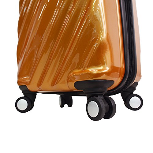 Details: Designed in Italy. The creation of the onda fusion hard side spinner luggage began with one complex goal. When design and craftsmanship meets state of the art our experience is revolutionary. The mia toro brand meaning my bull in Italian simply stands for strength, beauty and how your travel experience will change to a new exciting level. The durable hard shell construction is made of hard side composite, using the finest wheels, handle grips and the utmost detail to perfection and craftsmanship. You will travel in the latest style with the mia toro brand. Creative and contemporary mold design inspired by waves, light weight armor-flex composite, polished metallic finish that provides a rich and vibrant color, ergonomic gel grip handle, light weight trolley, slim lock TSA design, flex pack design expands 2 inch to add 25 percent more packing space, glide-tech dual wheel multidirectional 360 degree dual wheel provides smooth and stable motion, zipper divider- a fully zippered panel creates a second compartment to keep your possessions organized, compression straps and clasp are easy to use and keep your personal items secure. Ten year limited warranty 844.646.6887