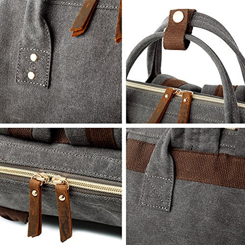 This canvas laptop backpack can be carried either as a backpack or a tote handbag. It stands even when it is empty, making it