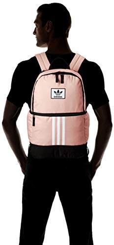 Details: Woven patch branding and printed 3-stripes. Large main compartment. Interior zippered mesh pocket with key fob. Dual side water bottle pockets. Laptop/tablet sleeve with protective lining. Padded shoulder straps.