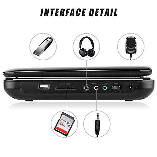 • 💿 broad compatibility with multimedia: this portable video player supports direct play various discs( of all regions) from CD, DVD, CD-R/RW, DVD -R/+R, DVD+RW/-RW, VCD to SVCD (but not blue-ray DVD). USB and SD cards ( Max to 32G ) are supported for playing MP3/WMA/WAV, JPEG, MPEG2/AVI/DivX