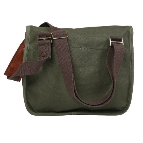 - Heavy-duty 18-ounce canvas construction with flat interior zippered pocket and two exterior side slash pockets