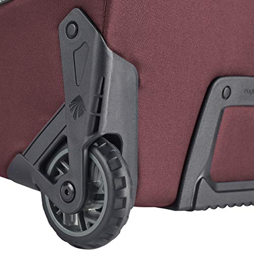 • DURABLE TRAVEL. Equipped with two rolling spinner wheels, this duffel allows your luggage to effortlessly glide from rom the airport to the street, and the street to gravel. The oversized treaded wheels provide luggage great grip and traction on tough terrain.