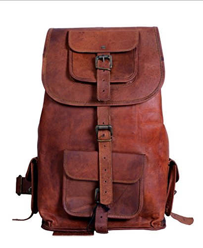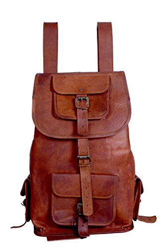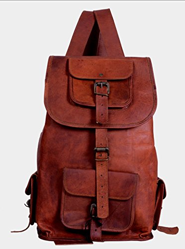 Details: Key Features: Brown Leather backpack Ideal for school / college students , backpackers , hikers and picnics fits clothing , i pad's , phones, chargers and water bottles Spacious and light weight adjustable shoulder straps 4 external pockets and 1 internal zipper pocket Dimensions: 10"(W) x 17.5"(H) x 7"(D) padded base Additional Details: Each leather product has a distinctive color tone, which may be different from shown images. The new leather product may have a distinctive leather smell. It will fade away within 3-4 weeks of regular use.