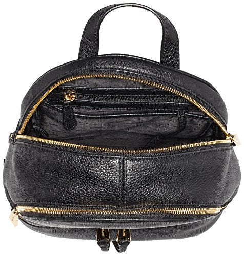 Details: A luxe MICHAEL Michael Kors backpack in pebbled leather. The wraparound top zip opens to a logo-lined interior with 3 pouch pockets and 1 zip pocket. 2 exterior zip pockets. Locker loop and adjustable shoulder straps. Dust bag included.