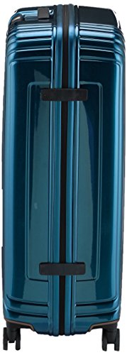 Details: Look sophisticated and stylish with the Samsonite Neopulse Spinner in Metallic Blue colour. Featuring tough makrolon polycarbonate, this luggage bag offer enough room for organised storage of your belongings. The bag has been provided with a zipped divider pad in both the top and bottom inner compartment. The bottom compartment has also got cross ribbons. The 75 cm Samsonite Neopulse Spinner comes equipped with four double wheels with colour details in silver and champagne on the wheels and wheel housing. It has an incorporated 3-digit TSA combination lock and lockable zippers too. A double tube wheel handle and a top and side carry handle promise comfortable grip. The Samsonite Neopulse Spinner 75 cm 4 Wheels in Metallic Blue also has an identification/address label at the back for travel convenience.