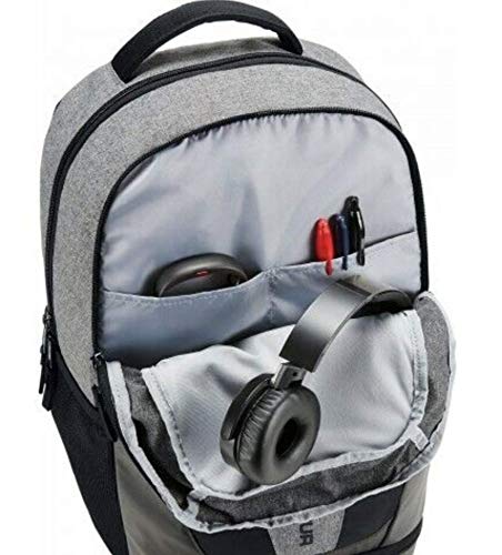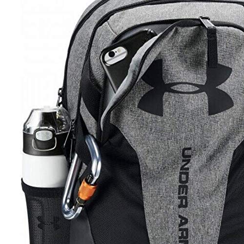 Details: Water-repellent backpack with large main compartment UA Storm technology withstands the elements to resist water penetration Water-repellent front valuables pocket keeps items safe Soft lined laptop sleeve holds up to 15” laptop Adjustable HeatGear shoulder straps for extra comfort and coolness and coolness Large, gusseted front laundry or shoe pocket at the bottom of bag Tough, abrasion-resistant bottom panel Two side pockets store water bottle Top grab handle for on-the-go convenience