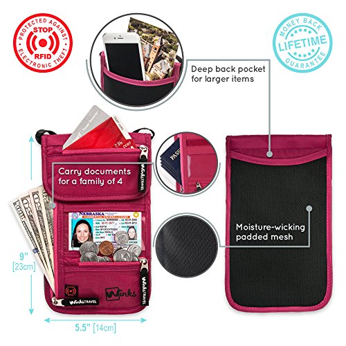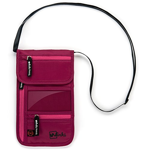 - SAFE FROM PICK-POCKETING - Electronic pick-pocketers are looking for easy targets. Not only can the Winks neck wallet be hidden under garments, it is also laced with RFID blocking material to keep your identity secure.