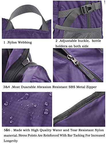 - Water-resistant and DURABLE. The backpack is made from highly rip and water-resistant nylon fabric, which provides strength and long-lasting performance, with minimal weight. Stress points are reinforced with bar tacking for increased longevity. We use durable 2-way Abrasion Resistant SBS Metal Zippers across the backpack.