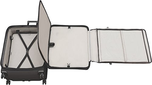 Details: Ideal for an extended stay, the spacious main compartment of this upright makes it the perfect checked luggage. Comfort grip, one-touch, dual-trolley aluminum handle system locks into three different positions - 104 cm (41 inch ), 99 cm (39 inch ) and 94 cm (37 inch ) - to accommodate travelers of various heights. Dual-trolley handle system also allows you to adjust to the ideal handle position when transitioning from pushing the bag upright to pulling it on two wheels. Dual-caster wheels offer ideal traction for a smooth roll across any surface while also providing 360 Degree maneuverability and zero weight-in-hand. Contains the intelligent Pack More System which consists of four packing solutions. Pack More System includes a deluxe Pack More divider, vertical X-shaped compression straps, a removable suiter and a 4 cm (1.6 inch ) zippered expansion. Deluxe Pack More divider features a large, easy-to-clean water-resistant storage pocket, is adjustable in height and creates a flat packing surface for wrinkle-free transport of clothing. Vertical X-shaped compression straps hold clothing securely in place when bag is tilted upright helping to reduce wrinkles. Front panel features zippered pockets for travel documents and a dedicated storage pocket for a Lifestyle Accessories 4.0 CheckSmart luggage tracking device (sold separately). Corner guards and rear skid plates provide added protection to areas of the case most prone to impact and abrasion. Top and side soft-grip retractable haul handles lay flat. Low-profile padded handle on bottom of case for easy lifting. ID tray slides into handle bezel for security and convenience. Lockable YKK Racquet Coil zippers. Custom zipper pulls feature a thumb groove inspired by the Swiss Army Knife. Travel Sentry Approved combination lock secures belongings while in transit and allows TSA screeners to open the lock without destroying it, and relock it after inspection. The Access Lock Combination Recovery Program allows you to register your lock combination on victorinox.com and recover it if it is ever forgotten. Swiss Tracker Bag Tracking Program will reunite you with your bag anywhere in the world should it ever be lost - for free. Covered by the Global Lifetime Plus Limited Warranty.