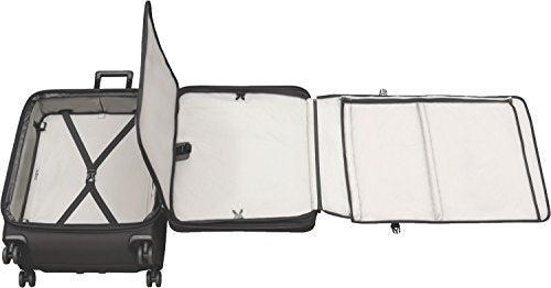 Details: Rely on this dual-caster upright to accompany you on week-long trips or when packing for multiple people. Comfort grip, one-touch, dual-trolley aluminum handle system locks into three different positions - 104 cm (41 inch ), 99 cm (39 inch ) and 94 cm (37 inch ) - to accommodate travelers of various heights. Dual-trolley handle system also allows you to adjust to the ideal handle position when transitioning from pushing the bag upright to pulling it on two wheels. Dual-caster wheels offer ideal traction for a smooth roll across any surface while also providing 360 Degree maneuverability and zero weight-in-hand. Contains the intelligent Pack More System which consists of four packing solutions. Pack More System includes a deluxe Pack More divider, vertical X-shaped compression straps, a removable suiter and a 4 cm (1.6 inch ) zippered expansion. Deluxe Pack More divider features a large, easy-to-clean water-resistant storage pocket, is adjustable in height and creates a flat packing surface for wrinkle-free transport of clothing. Vertical X-shaped compression straps hold clothing securely in place when bag is tilted upright helping to reduce wrinkles. Front panel features zippered pockets for travel documents and a dedicated storage pocket for a Lifestyle Accessories 4.0 CheckSmart luggage tracking device (sold separately). Corner guards and rear skid plates provide added protection to areas of the case most prone to impact and abrasion. Top and side soft-grip retractable haul handles lay flat. Low-profile padded handle on bottom of case for easy lifting. ID tray slides into handle bezel for security and convenience. Lockable YKK Racquet Coil zippers. Custom zipper pulls feature a thumb groove inspired by the Swiss Army Knife. Travel Sentry Approved combination lock secures belongings while in transit and allows TSA screeners to open the lock without destroying it, and relock it after inspection. The Access Lock Combination Recovery Program allows you to register your lock combination on victorinox.com and recover it if it is ever forgotten. Swiss Tracker Bag Tracking Program will reunite you with your bag anywhere in the world should it ever be lost - for free. Covered by the Global Lifetime Plus Limited Warranty