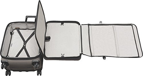 Details: The durability and maneuverability of this upright make it the perfect piece to bring on a three to five day business trip. Comfort grip, one-touch, dual-trolley aluminum handle system locks into three different positions – 104 cm (41”), 99 cm (39”) and 94 cm (37”) – to accommodate travelers of various heights. Dual-trolley handle system also allows you to adjust to the ideal handle position when transitioning from pushing the bag upright to pulling it on two wheels. Dual-caster wheels offer ideal traction for a smooth roll across any surface while also providing 360° maneuverability and zero weight-in-hand. Contains the intelligent Pack More System which consists of four packing solutions. . Vertical X-shaped compression straps hold clothing securely in place when bag is tilted upright helping to reduce wrinkles. Front panel features zippered pockets for travel documents and a dedicated storage pocket for a Lifestyle Accessories 4.0 CheckSmart luggage tracking device (sold separately). Corner guards and rear skid plates provide added protection to areas of the case most prone to impact and abrasion. Top and side soft-grip retractable haul handles lay flat. Low-profile padded handle on bottom of case for easy lifting. ID tray slides into handle bezel for security and convenience. Lockable YKK Racquet Coil zippers. Custom zipper pulls feature a thumb groove inspired by the Swiss Army Knife. Travel Sentry Approved combination lock secures belongings while in transit and allows TSA screeners to open the lock without destroying it, and relock it after inspection. The Access Lock Combination Recovery Program allows you to register your lock combination on victorinox.com and recover it if it is ever forgotten. Swiss Tracker Bag Tracking Program will reunite you with your bag anywhere in the world should it ever be lost – for free.