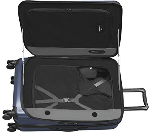 Details: The only checked luggage you'll need - this case expands for up to 45% more packing capacity and features exterior compression straps that allow you to customize the case size. Comfort grip, one-touch, dual-trolley aluminum handle system locks into three different positions - 41 inch (104 cm), 39 inch (99 cm) and 37 inch (94 cm) - to accommodate travelers of various heights and adjusts when transitioning from pushing the bag on four wheels to pulling it on two wheels. Dual-caster wheels feature soft tread offering ideal traction for a smooth roll across any surface while also providing 360 Degree maneuverability and zero weight-in-hand. Break-resistant 100% pure Bayer polycarbonate with stylish, scratch-resistant matte finish delivers superior strength for the highest level of performance. Corner guards and zipper bumpers provide added protection to areas of the case most prone to impact and abrasion. Expands an additional 11 cm (4.3 inch ) for up to 47% more capacity. Exterior compression straps allow you to adjust the case to multiple sizes and customize your packing space. Front zippered door with stabilizing straps allows for easy top load packing. Zippered mesh divider wall stretches for easy packing. Interior organization includes a zippered mesh pocket and zippered essentials pocket . Y-shaped compression straps cover a greater surface area to keep folded items secure. Top and side haul handles for easy carrying. Integrated Travel Sentry Approved lock allows U.S. TSA screeners to open the lock without destroying it, and relock it after inspection. Swiss Tracker Bag Tracking Program will reunite you with your bag anywhere in the world should it ever be lost - for free. The Access Lock Combination Recovery Program allows you to register your lock combination on victorinox.com and recover it if it is ever forgotten. Removable ID tag for security and convenience. Covered by the Global 10-Year Limited Warranty