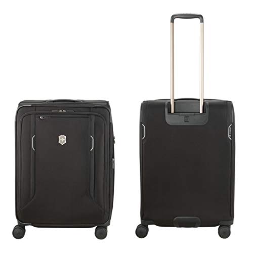 Details: The Werks Traveler 6.0 Medium Softside Case features a number of smart functions and elevated details while offering maximum packing capacity and durability. The exterior features: abrasion and water resistant ballistic nylon, Swiss engineered 3-stop trolley system, 60mm dual caster Hinomoto wheels with Lisof silent tires for a smooth and quiet roll, top and side soft-gripretractable haul handles, self healing YKK RC coil-zippers, integrated flush mounted TSA combination lock, a large U-shaped front pocket and two small exterior pockets for easy-access packing, a hidden ID tray in the handle bezel that slides up to reveal a pen and SIM card replacement tool, expands 4cm for extra packing capacity. The interior features: the Pack More System which includes a removable, expandable packing cube with a padded 15.4" laptop compartment. The Pack More cube provides organization and creates a flat packing surface for wrinkle-free transport of clothing. Also included on the interior are X-shaped compression straps to keep belongings in place during transit, a removable suiter for packing hanging clothing and two large mesh side pockets.9.35 lb / 4.24 kg. 4577 cu in / 75 L [Expands to 5187 cu in / 85 L]. 1 + 10 Years Warranty.