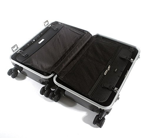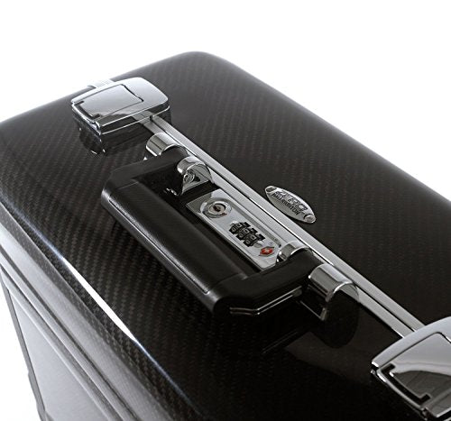 Details: The Carbon Fiber Carry-On 4-Wheel Spinner Travel Case is the perfect travel bag for flying cross country or for taking off on a long weekend in style. Made of pure Carbon Fiber, the Carbon Fiber Carry-on 4-Wheel Spinner Travel Case is both lightweight and incredibly strong. Added features include a TSA-Accepted Combination Lock, a Sealed-Gasket Frame, and two Drawbolt Latches for added strength and security. Travelers will appreciate the dual-release pull-up handle as well as a fully-lined and organized interior. With dual wheels at each corner, the Carbon Fiber Carry-On 4-Wheel Spinner Travel Case rolls effortlessly and is easy to navigate through the airport concourses as well as down the aisle of the airplane. The Carbon Fiber Carry-On 4-Wheel Travel Case perfectly blends style with function.