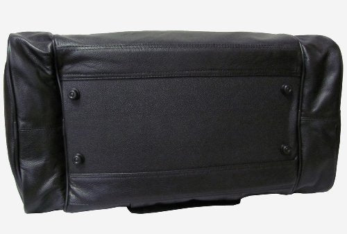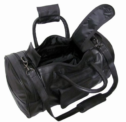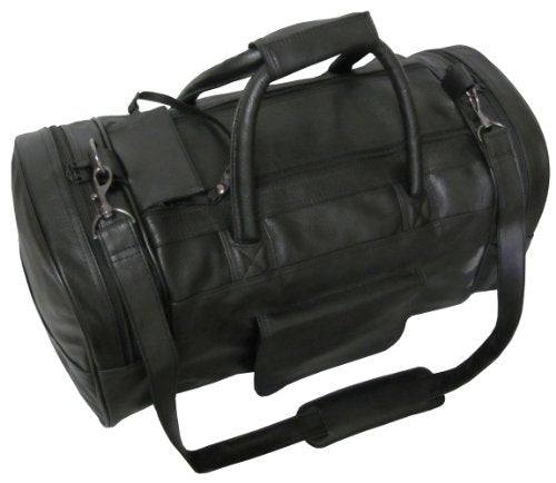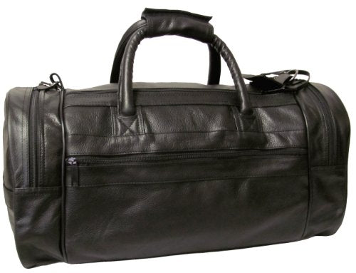 Details: Pack clothing, accessories, and toiletries for an overnight trip or a workout at the gym inside this sophisticated leather duffel bag from AmeriLeather. The AmeriLeather Leather Dual Zippered Duffel bag is made from top grain cowhide leather and features a medium sized barrel shape with multiple pockets for organization, dual top handles for hand toting, and a detachable shoulder strap that makes it comfortable to carry. The main compartment has a double zip top closure and offers plenty of room for clothing while zippered pockets at each end and a Velcro side gusseted pocket provide added storage for toiletries, accessories, and small personal items.