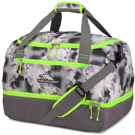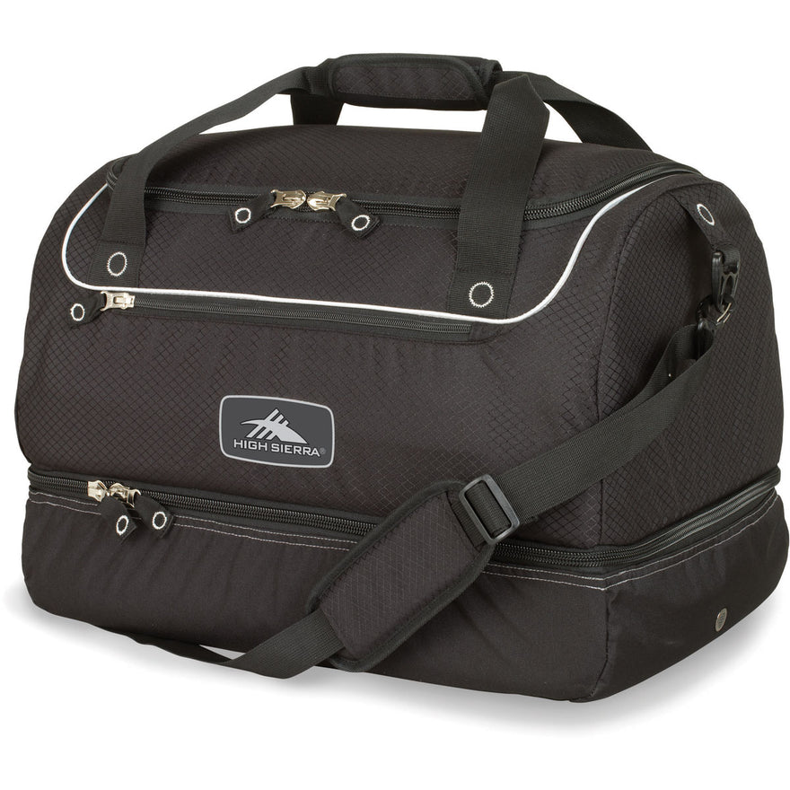 - Padded drop-bottom compartment with ventilation/drainage grommets holds a pair of ski or snowboarding boots up to mens size 13. It can also be used for laundry or other gear.