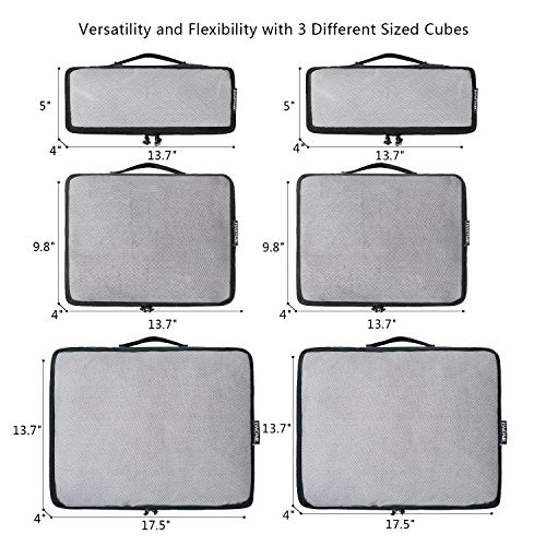 - WORRY FREE LIFETIME WARRANTY)6 Packing Cubes:6 Packing Cubes - 2* Large( 17.5" x 13.7" x 4") 2*Medium (13.7" x 9.8" x 4") 2 *slim (13.7"x5"x4")