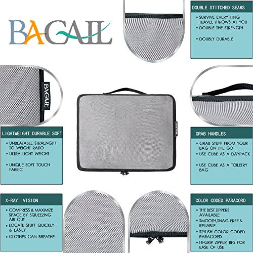 - VALUED &CONVENIENT:Mesh top panel for easy identification of contents, and ventilationThese cubes will go the distance. No broken zippers, no weak stitching. Bagail Packing Cubes will become your most valued and reliable travel buddy!