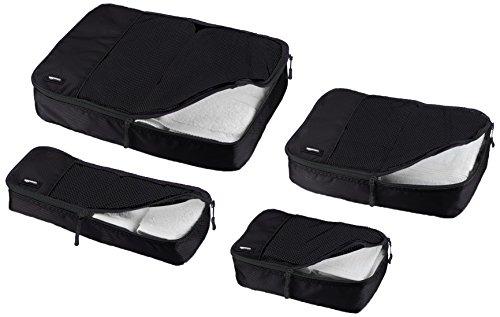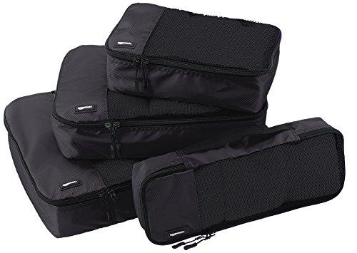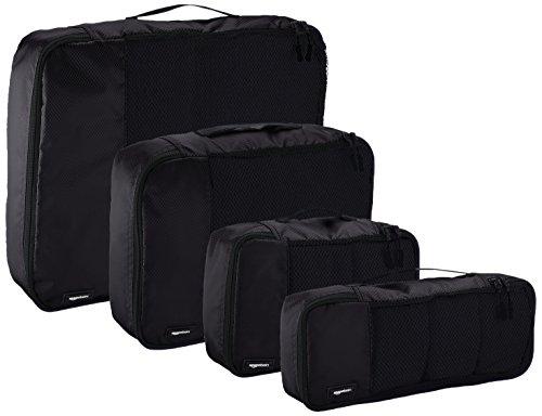 - Set includes 1 large (17.5 x 12.75 x 3.25 inches), medium (13.75 x 9.75 x 3 inches), small (11 x 6.75 x 3 inches), and slim (14 x 5 x 2.8 inches) AmazonBasics packing cube