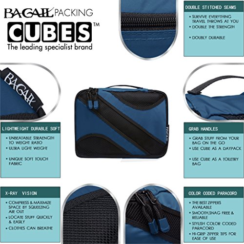 - VALUED &CONVENIENT:Mesh top panel for easy identification of contents, and ventilationThese cubes will go the distance. No broken zippers, no weak stitching. Bagail Packing Cubes will become your most valued and reliable travel buddy!