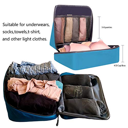 - Convenient&Multi-Functional: Classifying and organizing your belongings for your travel will become easy with the 7 set of packing organizers.The 3 packing cubes for all kinds of clothes(Such as jackets,sweater,pants,T-shirts, jeans, etc).2,The bra underwear bag for bras,underwears,etc.3,The shoe bag for slippers,shoes.4,The flat bag for your electronic accessories;5,The clear toiletry bag for your toiletries accessories,cosmetics,etc.