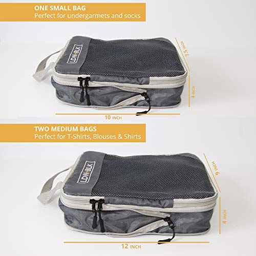 Expandable Storage Mesh Bags LondonBLK Packing Cubes feature breathable, mesh-top panels that offer not only important ventilation, but also enable viewing for easily identifying what's inside. These cubes allow you to easily pack and organize your clothing and even easier to unpack.
