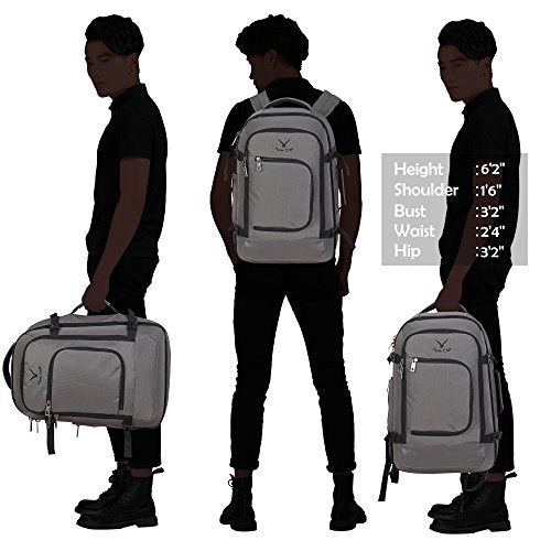 - Designed to fit the maximum size allowed on an IATA flight, fits in the overhead compartment as well as the under seat as storage in flight; A true hands-free carry on with suppressible shoulder straps, easily to convert from duffel into a backpack in seconds
