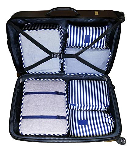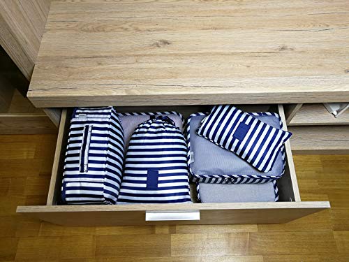 - USE 6 items: 1.Garment cubes:10-12 shirts, 2.Garment cubes: 6-8 shirts, 3.Garment cubes: 4-6 shirts, 4.Underwear bag: for bra, underwear and socks, 5.Flat bag zipper: for your toiletry accessories, personal cosmetics or electronic; 6.Laundry bag: help to separate your dirty clothes at the end of the trip