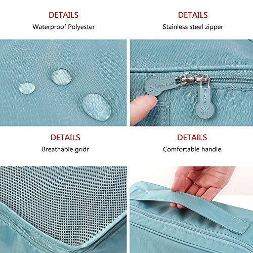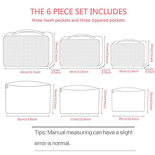 Details: Unitravel Brand New, 6 Set Packing Cubes ,Which Is Constructed From Made of High Quality Waterproof Nylon Material,and Breathable Mesh Surface. No Unpleasant Odor,No Broken Zippers, No Weak Stitching. 6 Pieces Zipper Divider To Create several Separate Interior Compartments.Take This fashion Packing Cubes, Take Your Pleasure Along The Trip!