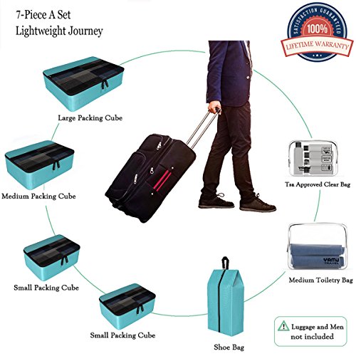 - 【7 pieces a set】4 packing cubes +1 shoe bag +1 toiletry bag +1 TSA approved toiletry bag= Valuable & Practical. 7 choices to meet all your travel needs.